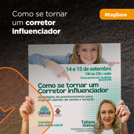 Nos dias 14 e 15 de setembro, no período da noite, Tatiana Gielow, sócia da Basetag, irá protagonizar uma palestra sobre “Como se tornar um corretor influenciador”. Nesses dois dias o evento irá abordar como aprender estratégias de posicionamento para angariar clientes de venda e locação, entre outros assuntos.